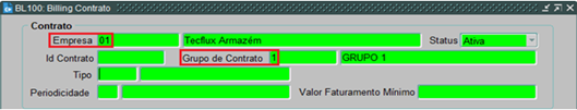 - Grupo de Contrato: caso o cliente queira agrupar os contratos dentro de um grupo. O campo é meramente informativo.