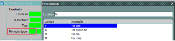 - Periodicidade: período que será utilizado como base para o faturamento dos serviços.