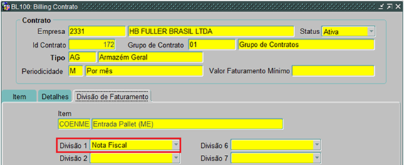 Na aba “Divisão de Faturamento” é possível configurar o evento para que nas atualizações dos períodos, o WMS segregue as linhas da tela BL200 por divisão de faturamento.