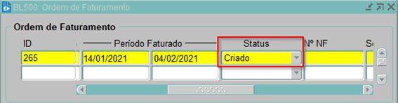 Após a OF ser exportada na tela BL900, o status da OF na tela BL500 é alterado para “Exportado”.
