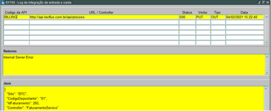 - Botão Atualizar: neste momento o sistema faz uma busca em todos os eventos que foram cadastrados no contrato do Depositante, sempre levando em consideração o período informado.