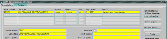 Caso exista integração de retorno com o número da NF de serviço que foi emitida no ERP, o WMS receberá o arquivo CFAT:
