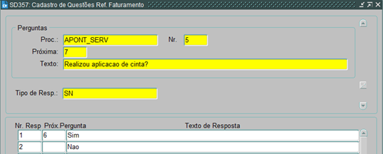 - Próxima Pergunta: Este campo é relativo as questões sequenciais, por exemplo: Se na questão 5 a resposta for Sim, seguirá para a questão de número 6, que neste caso questiona quantos pallets foram aplicados cinta; se a resposta for Não irá direto para questão de número 7.