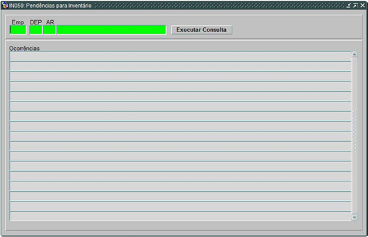 Para executar, deve-se clicar no botão “Executar Consulta”. Em seguida, o sistema exibe na parte inferior da tela as pendências de inventário.