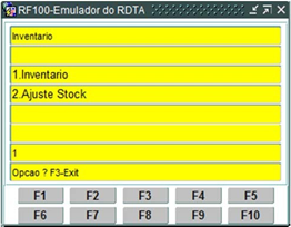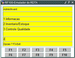 Para realizar um inventário no armazém, deve-se primeiramente, criar uma lista de inventário no sistema. Para isso é necessário utilizar a tela IN100 que pode ser acessada pela tela principal “Informação”, tendo assim que digitar o número da tela e confirmar, ou pelo menu “Funções” → “Inventário” → “IN100: Requisição de Lista de Inventário”.