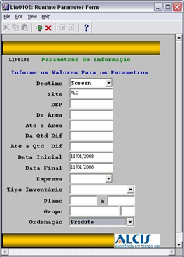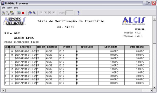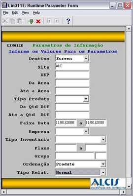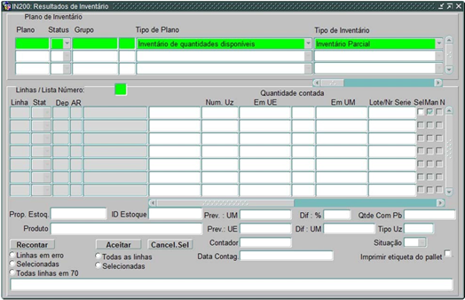 Na tela a seguir do WMS Alcis, são utilizados os resultados de inventário antigo; ou seja, que já não constam na tela IN200.
