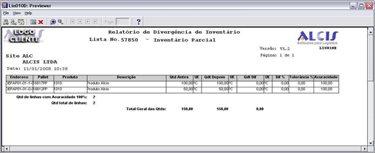 No WMS Alcis, é possível gerar relatórios com as diferenças encontradas no estoque durante o processo de inventário. A tela utilizada para esta função é a IN400.