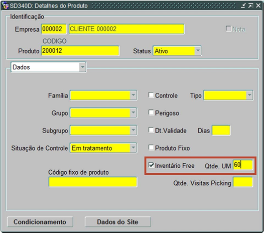 Na tela SD340D, ativar o Flag de Inventário Free. O inventário poderá ser gerado de duas formas: