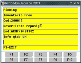 Como exemplo, usamos a Qtde Um de 60; assim, ao realizar a separação de um pedido com número maior que 60, automaticamente o coletor mostrará a tela com Inventário Free, onde devemos informar a Qtde UM.