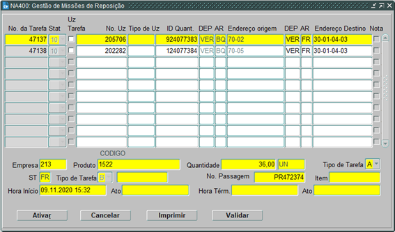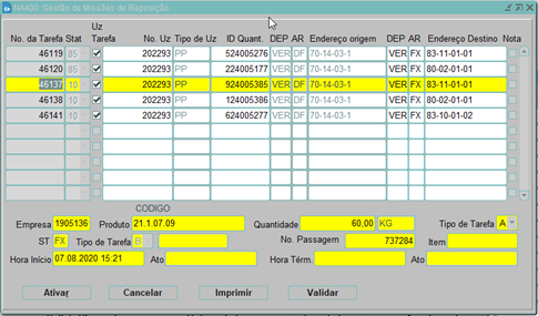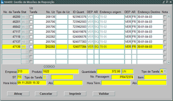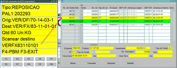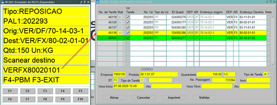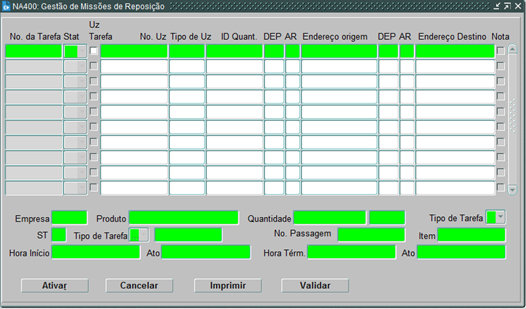 Realiza o processo de validação de uma tarefa de reposição que está com Status “10-Ativa”. Normalmente é utilizada quando efetua-se o processo de reposição utilizando o Mapa de Reposição.