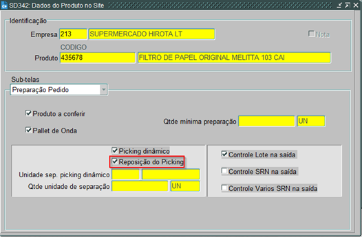 - “Produto” - informa o código do produto que está cadastrado no respectivo picking.
