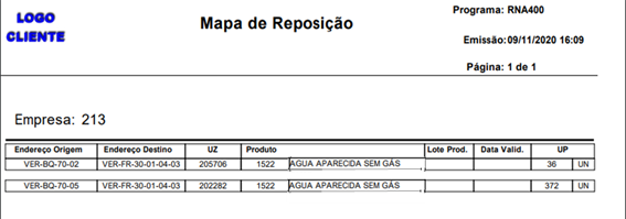 - “Dep/Área/Endereço” - informa o endereço que será abastecido pela reposição.