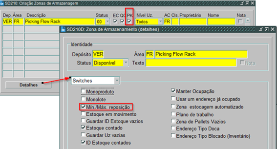 - SD210: Criação das Zonas de Armazenagem e SD210D: Zona de Armazenamento (detalhes)