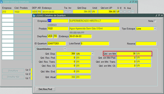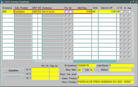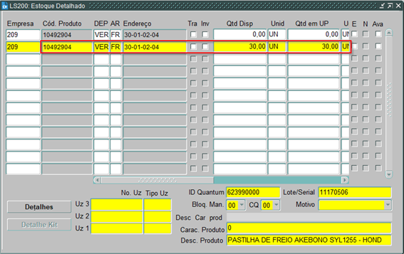 Na tela “LS300” é possível verificar as quantidades disponíveis.
