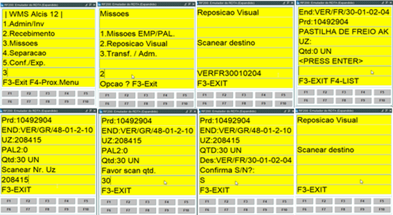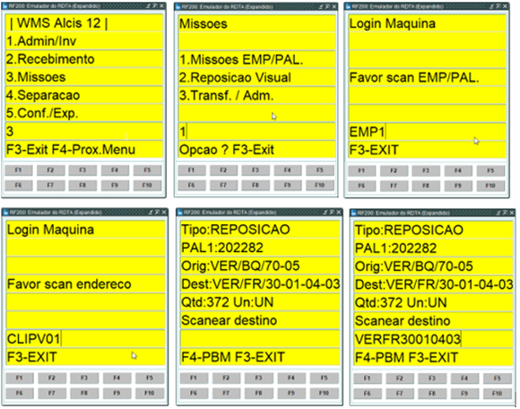 Para realizar a missão de reposição, é preciso acessar o coletor de dados (RF). No nosso, será usado o emulador do coletor. Para isso, deve-se acessar o menu Funções/Emulador do RDTA/RF200 e seguir a sequência: