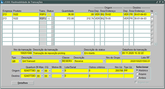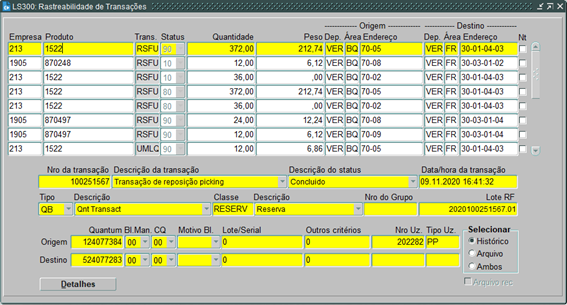O mesmo acontece na consulta atualizada da tela LS300, onde é possível verificar que a linha da transação “RSFU” que estava com status “10-Ativa” agora está com status “90-Realizada”.
