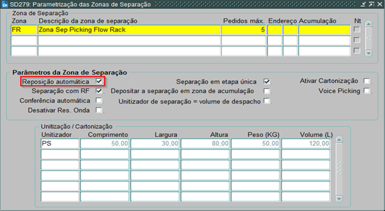 O processo de reserva com quantidade negativa no endereço de picking fixo só pode ser efetuado se o processo de reposição automática estiver parametrizado.