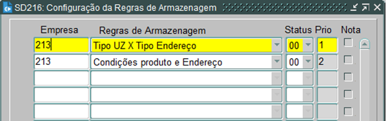 - Determinar a Zona de Armazenagem na SD210: Criação das Zonas de Armazenagem e SD210D: Zonas de Armazenamento (detalhes).