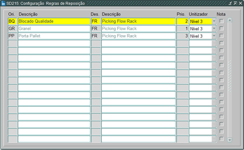 - Cadastrar as regras da reposição na SD215: Configuração Regras de Reposição.