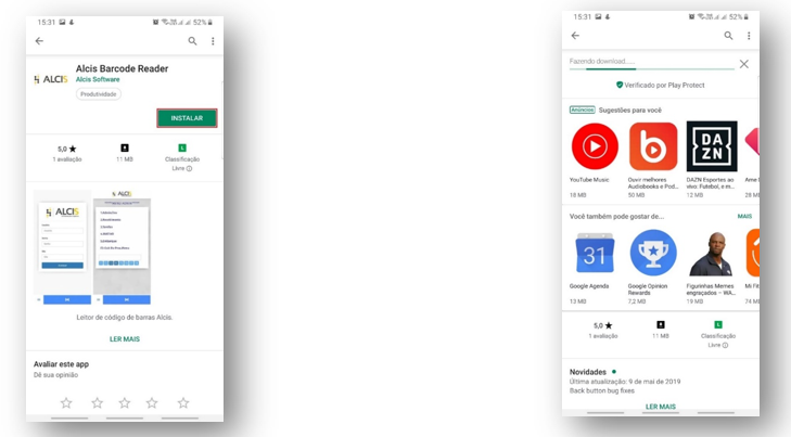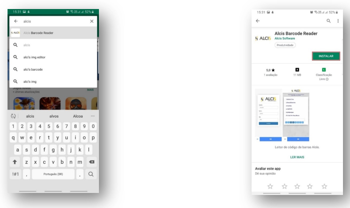 A seguir detalhamos a instalação do aplicativo Alcis Barcode Reader através do Play Store da Google.