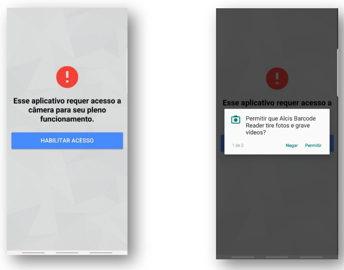 Após a instalação do aplicativo, acessando pela primeira vez, será solicitado o acesso a câmera do seu dispositivo. Deve-se permitir o acesso para que o aplicativo funcione de forma correta.