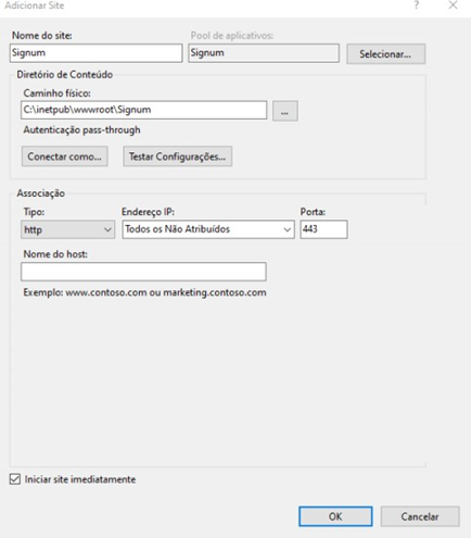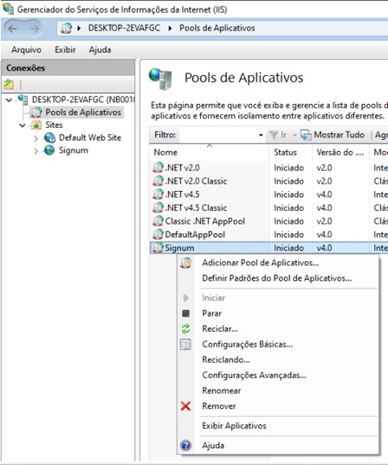 Configuração do serviço de IIS para o perfeito funcionamento do Signum.