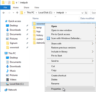 Clique com o botão direito na pasta “wwwroot” e depois vá em “Propriedades”.