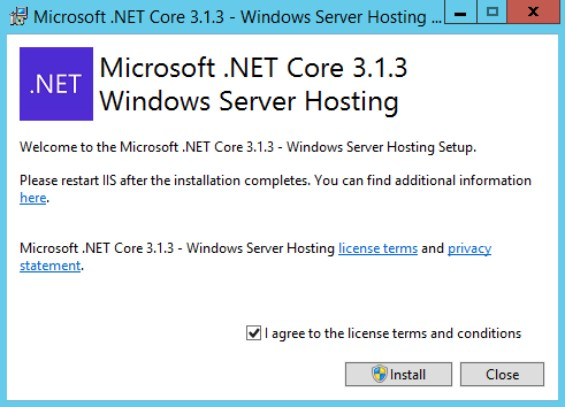 Com o processo concluído basta realizar a instalação do .NET Core 3.1 Runtime & Hosting (x64).