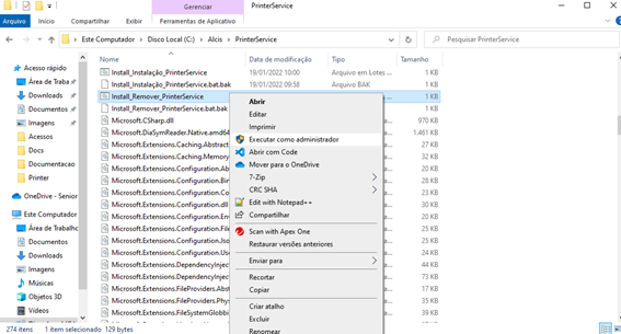 3. Extrair o arquivo zipado e após executar como Administrador o instalador Install_Instalação_PrinterService.