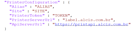 - PrinterToken: Senha de acesso do Printer.