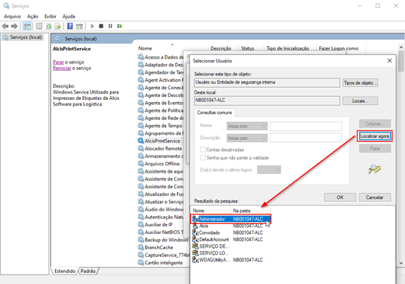Clique em Localizar Agora, selecione o administrador da máquina e Ok.