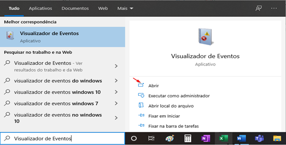 No menu iniciar digite Visualizador de Eventos.