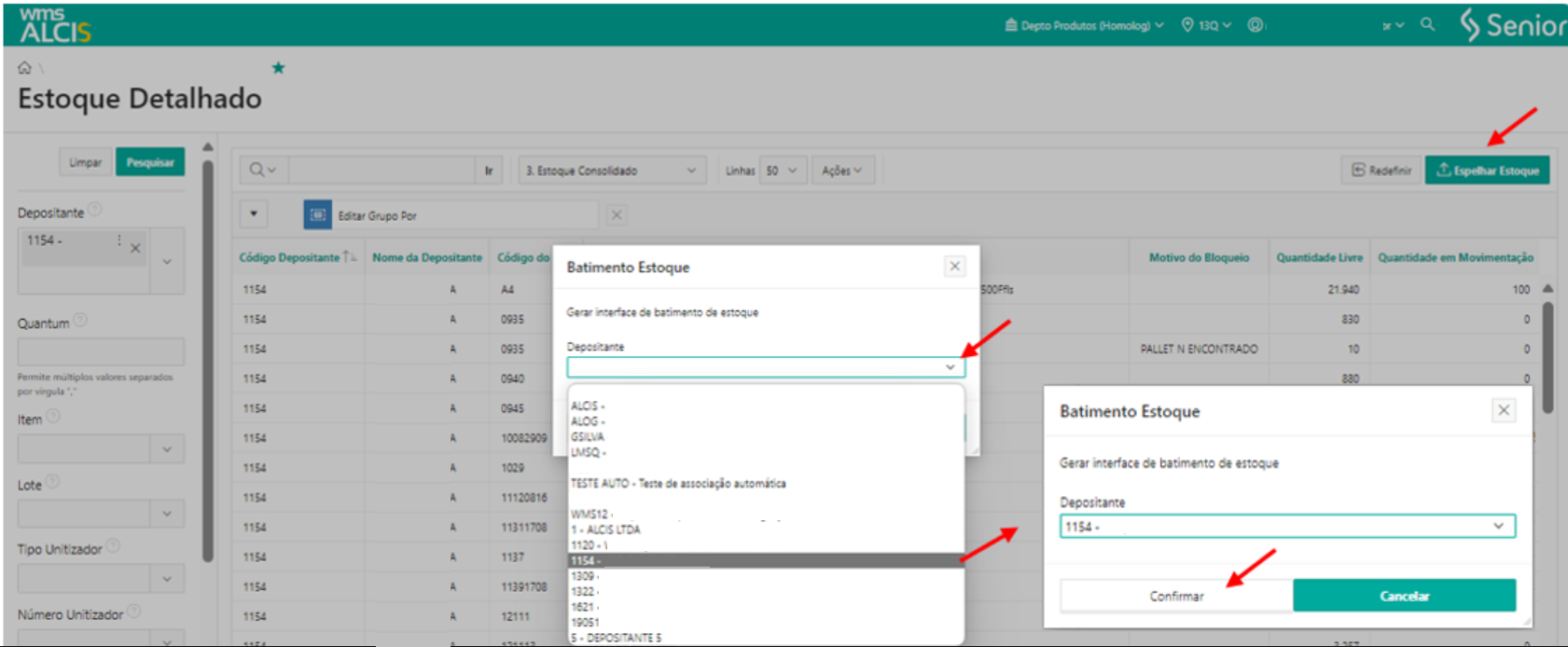 O espelhamento de estoque esta relacionado à integração entre o Senior WMS Alcis Web com o sistema ERP do depositante. Esse processo visa sincronizar e refletir o inventário registrado no WMS com o inventário mantido no ERP do depositante. Através dessa integração, é possível realizar uma comparação precisa e contínua dos níveis de estoque entre os dois sistemas, garantindo a consistência e a precisão das informações de inventário, minimizando discrepâncias e otimizando a cadeia de suprimentos. O espelhamento de estoque é essencial para assegurar que tanto o WMS quanto o ERP apresentem dados atualizados e harmonizados, facilitando a tomada de decisões e melhorando a eficiência operacional.