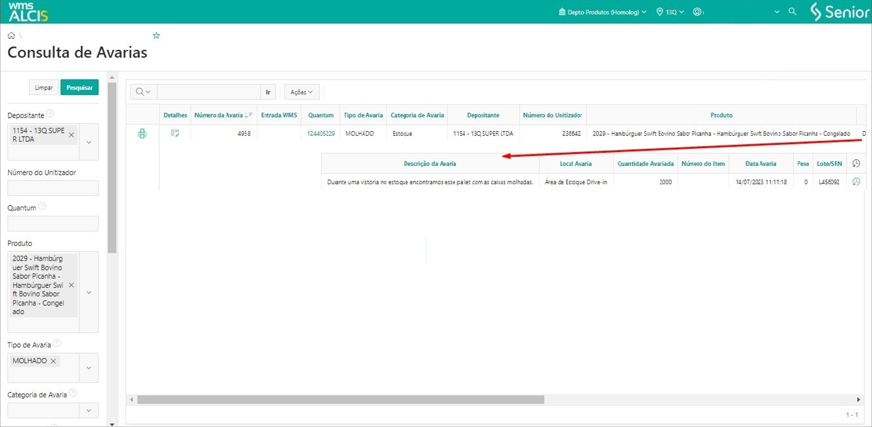 - Ao informar a avaria, o sistema irá detectar qual transação o produto em avaria pertence.