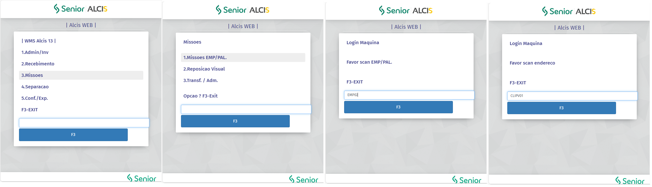 - Processo de Reposição Visual (Coletor de Dados), através do Menu 3-Missões > 2-Reposição Visual.