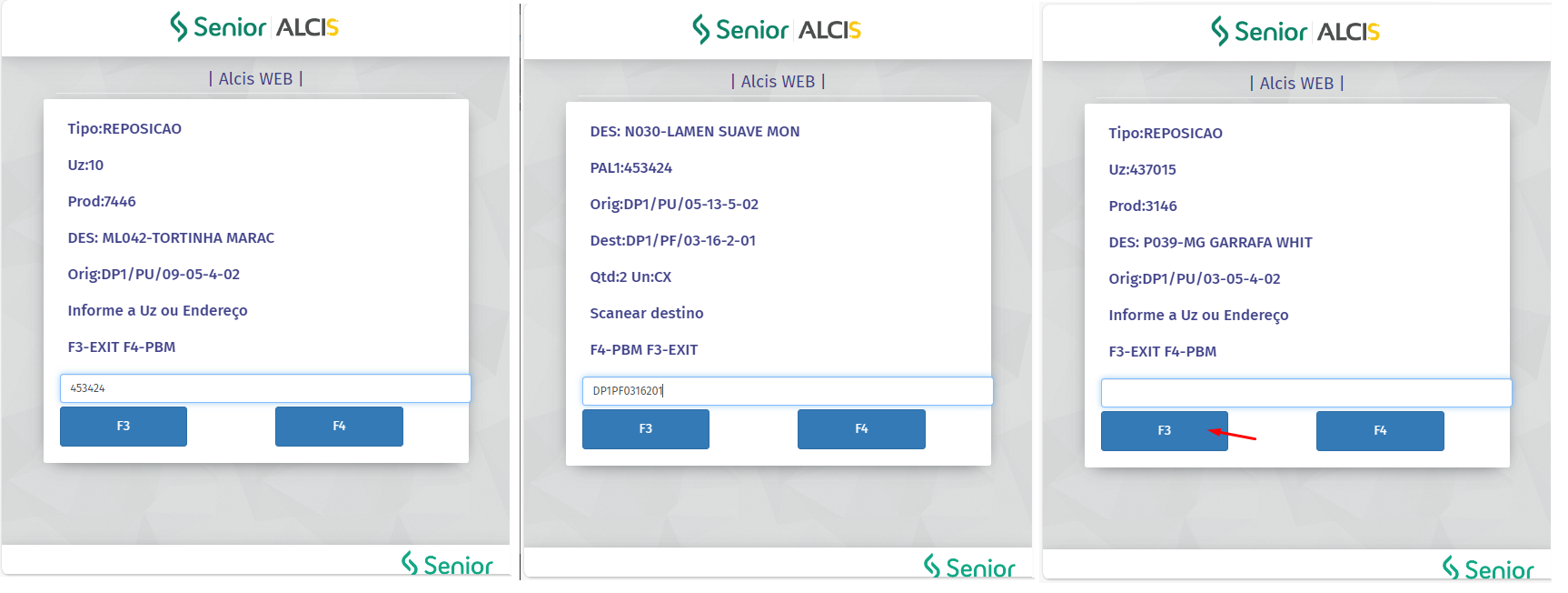 A tela do coletor será novamente atualizada para permitir a execução de um novo processo de reposição. No entanto, se não haver uma reposição adicional, a função F3 deve ser utilizada até retornar ao menu principal do coletor.