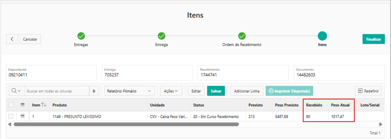 O recebimento do produto de Peso Variável tem uma característica diferente nele não informamos a quantidade na unidade mínima do produto no caso CXV, informamos a quantidade em Quilos (KG) para receber.