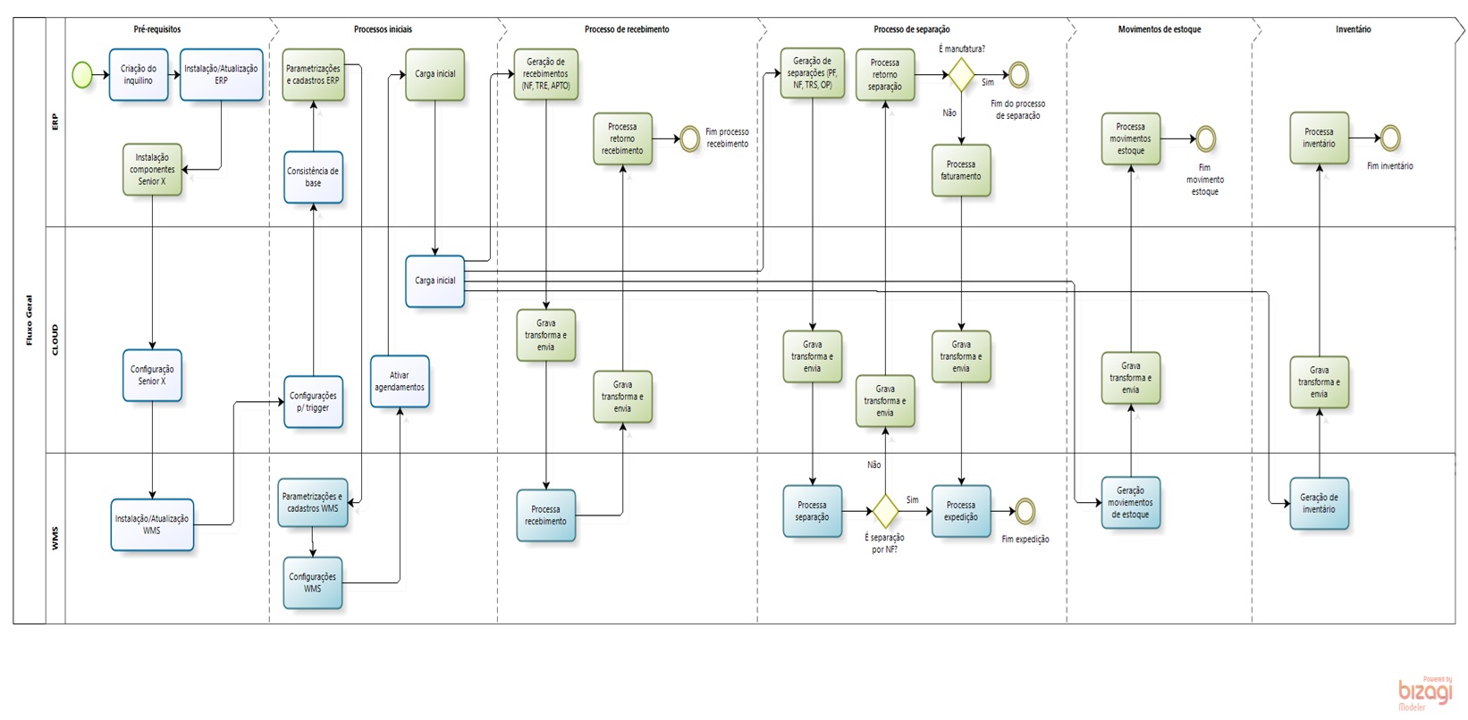 Macro Fluxo do Processo de Integração ERP (Gestão Empresarial | ERP) x Senior WMS Alcis Web
