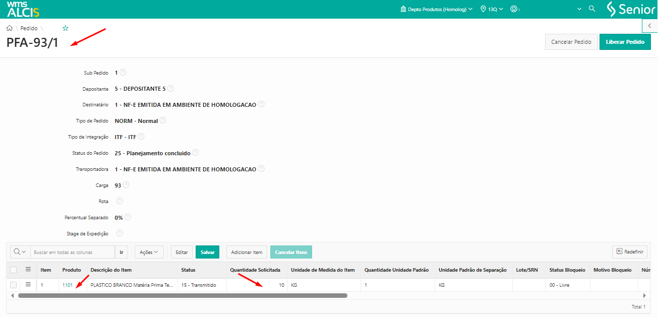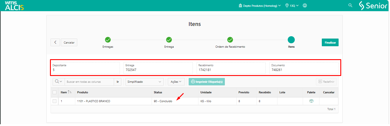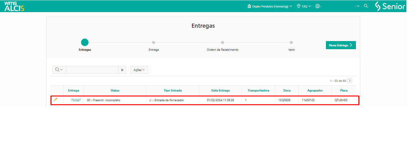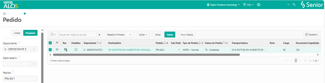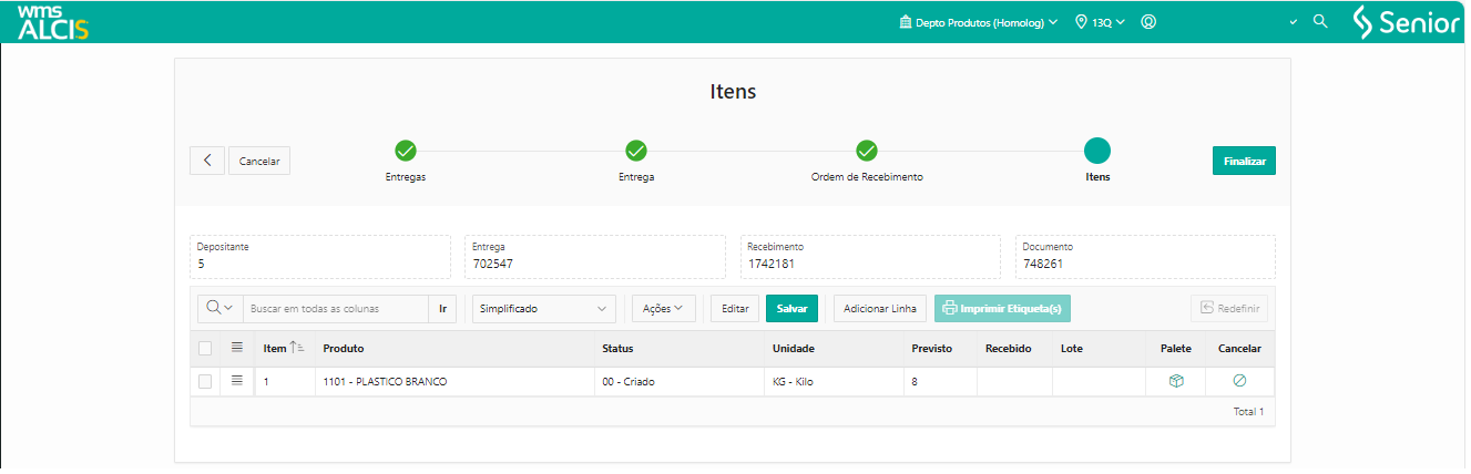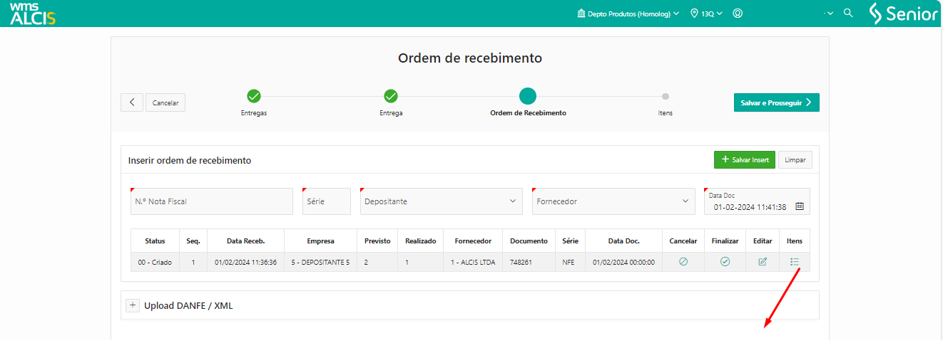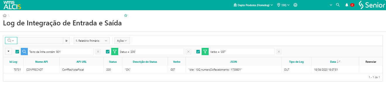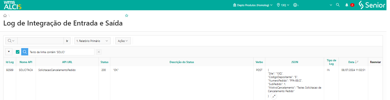 Processo integrado (automático) com origem no ERP (Gestão Empresarial | ERP) e Retorno do Senior WMS Alcis Web