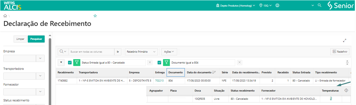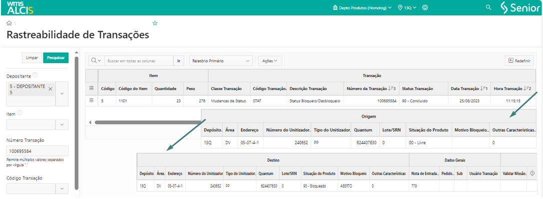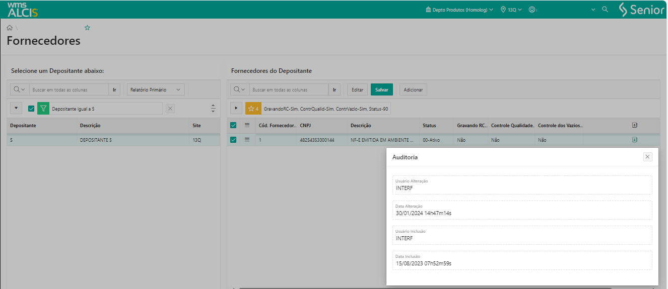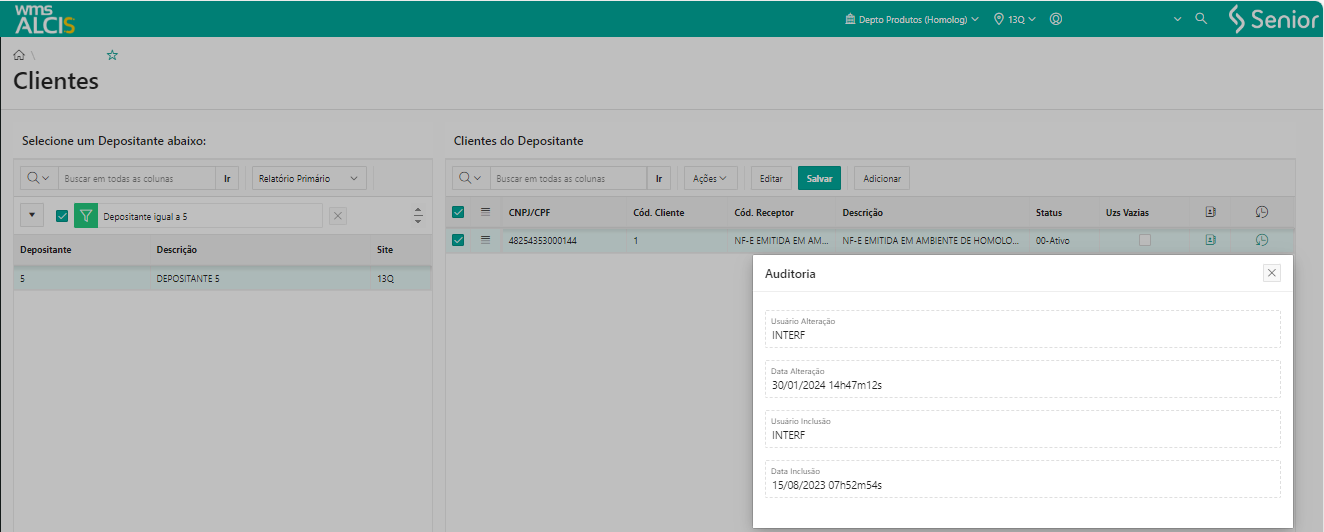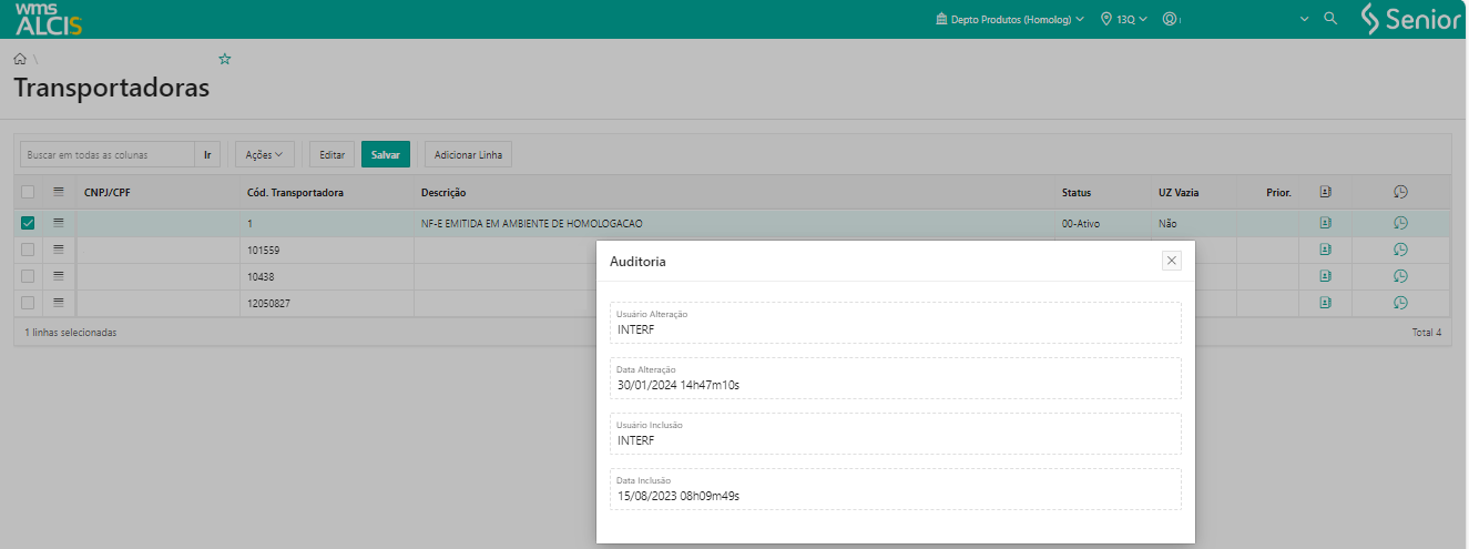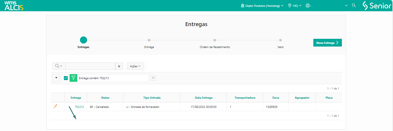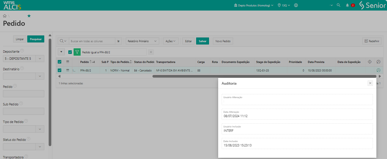 Processo integrado (automático) com origem no ERP (Gestão Empresarial | ERP) e Retorno do Senior WMS Alcis Web