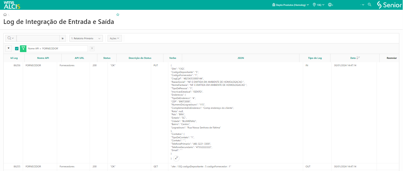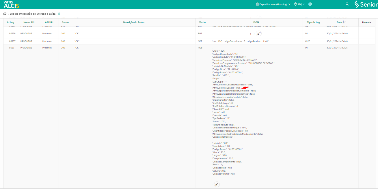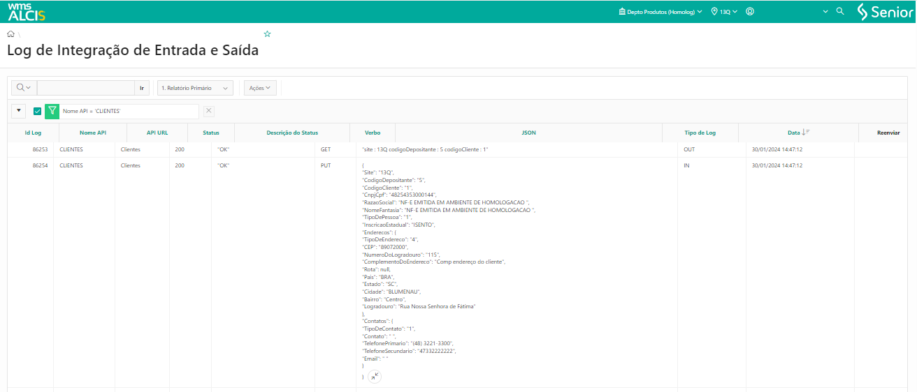 APIs Sentido IN | ERP (Gestão Empresarial | ERP) envia para o Senior WMS Alcis Web