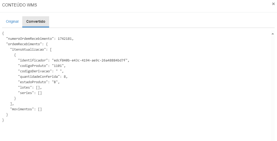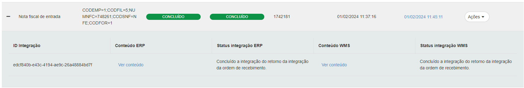 Quando o WMS finaliza o processo de recebimento, a API é enviada para o ERP.