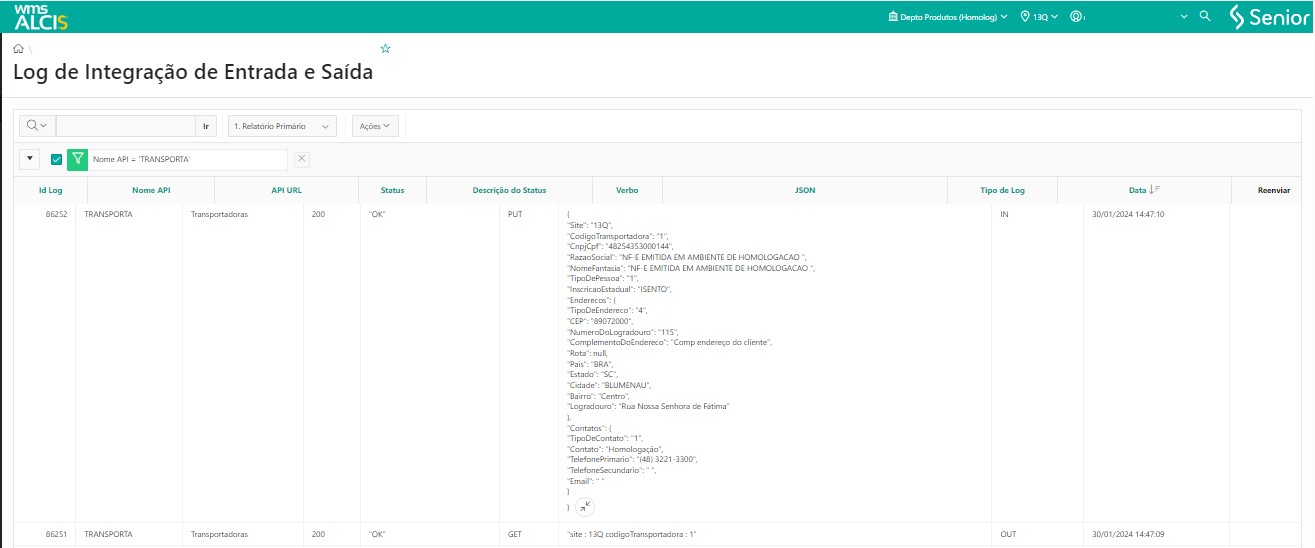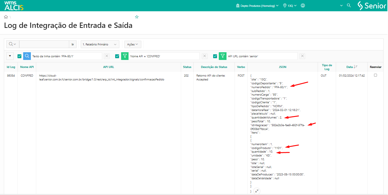 APIs Sentido OUT | Senior WMS Alcis Web envia para o ERP (Gestão Empresarial | ERP)