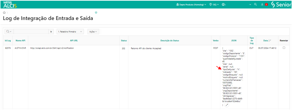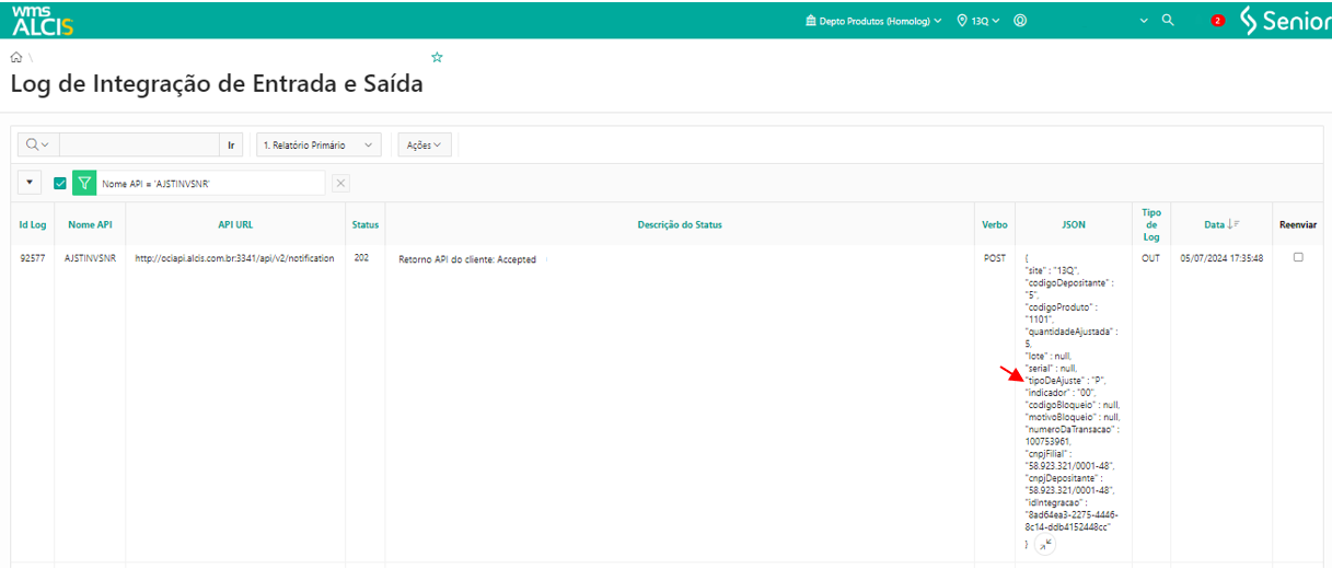 - Ao realizar a validação do plano de inventário, se houver divergência no estoque aferido, seja ela positiva ou negativa, é realizado o envio da API AJSTINVSNR.