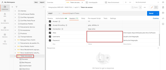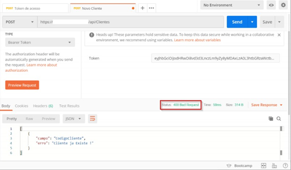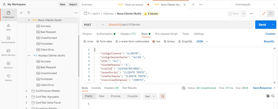 401 – Essa resposta significa que o Token não foi informado ou expirou ou uma credencial está incorreta.
