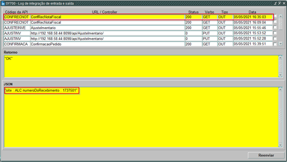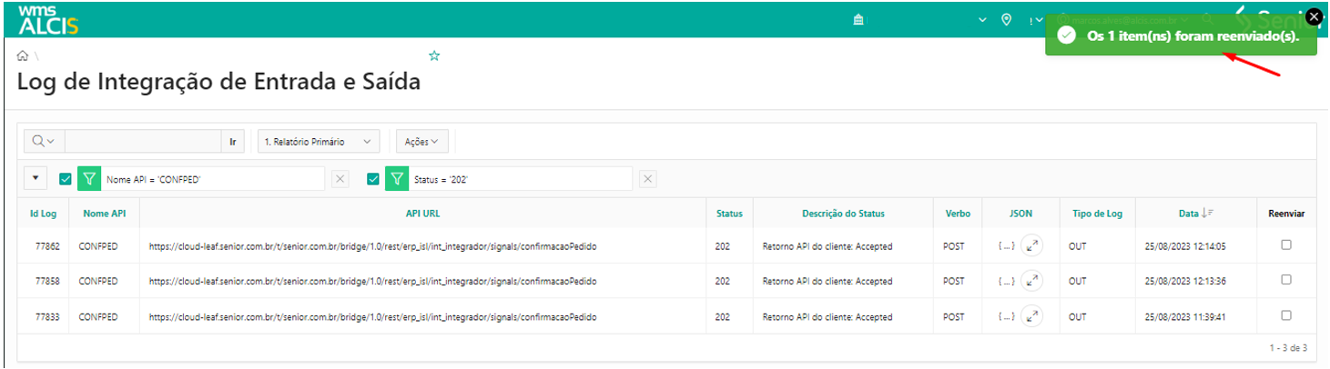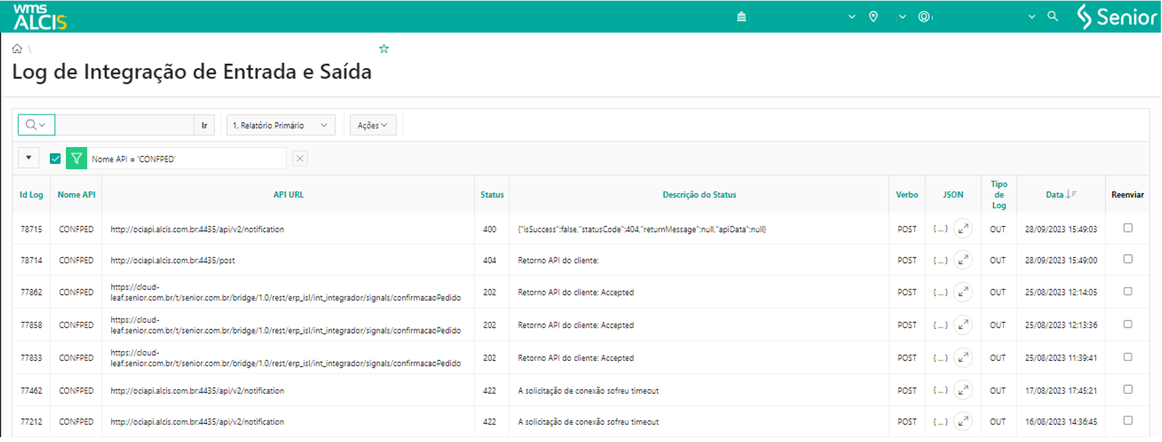O Reenvio de API é utilizado quando uma API foi enviada para o ERP sem gerar erros no WMS. No entanto, por razões desconhecidas, não ocorreu a integração desejada no ERP.