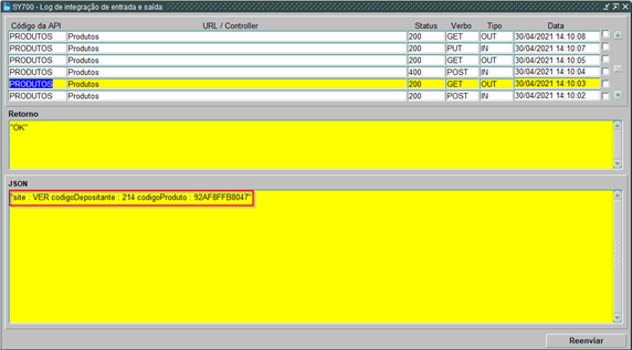 Todos os logs de integração tanto para entrada como saída são gerados na tela SY700, é possível identificar as integrações que deram certo com status 200, as integrações que falharam com outros status como por exemplo 400 e as integrações que não foram processadas estão com status 0.