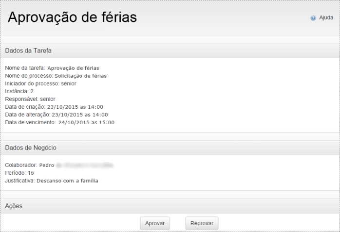 Visualize as informações adicionais da tarefa associada à alguma ação da lista de pendências:
