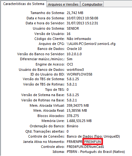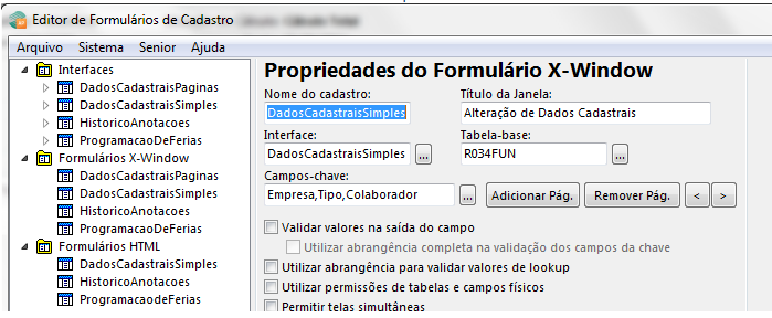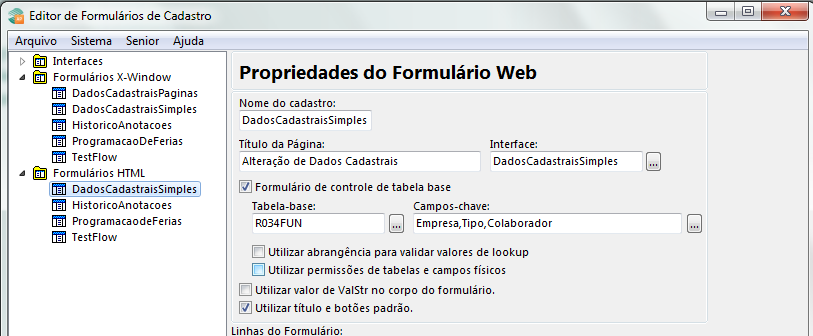 Se a opção Formulário SGI não estiver selecionada no Senior Developer: