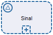 | Sinal | Subprocesso iniciado com um evento inicial de sinal. Podem ser utilizados em processos ou subprocessos. Cada caminho deve terminar em um evento de fim. Esse subprocesso não possui conexões com os demais elementos, por isto não possui fluxos de sequência de entrada e nem de saída. São executados quando lançado um evento intermediário de sinal do escopo em que estão inseridos (o nome do evento intermediário e o do evento de início devem ser iguais para que o processamento do sinal execute corretamente). |